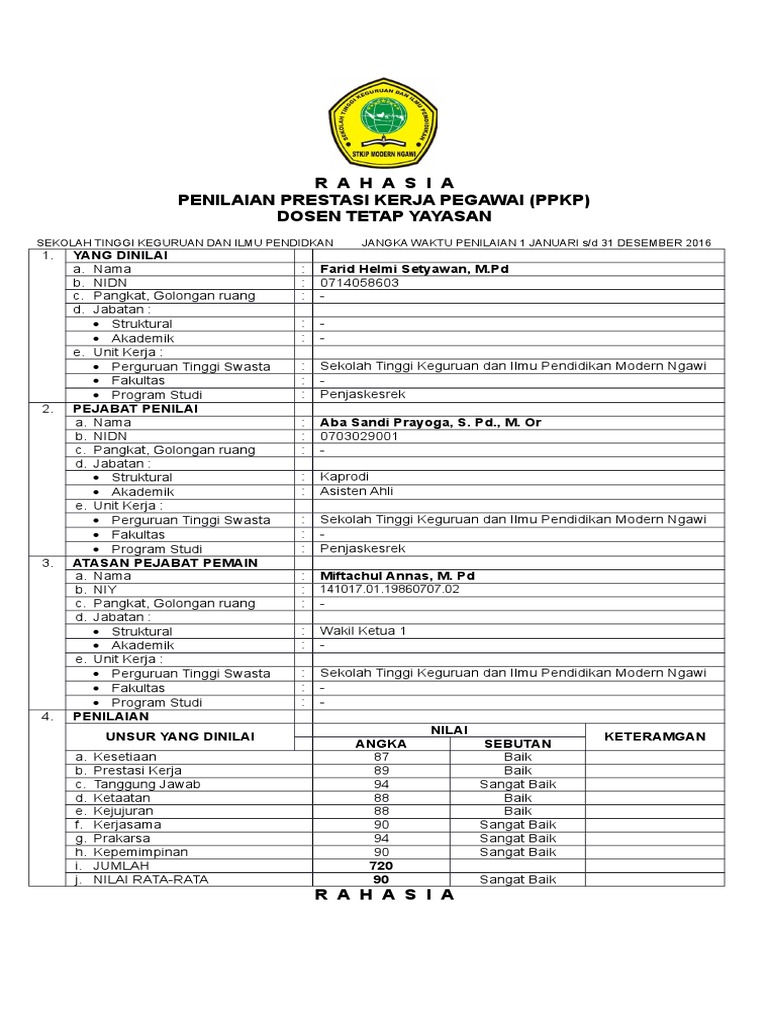 Formulir Penilaian Prestasi Kerja Ppt Download