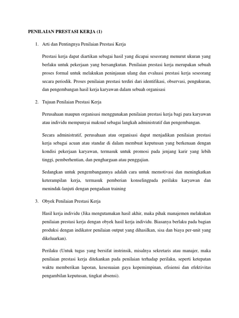 Penilaian Prestasi Kerja Terbaru Pdf